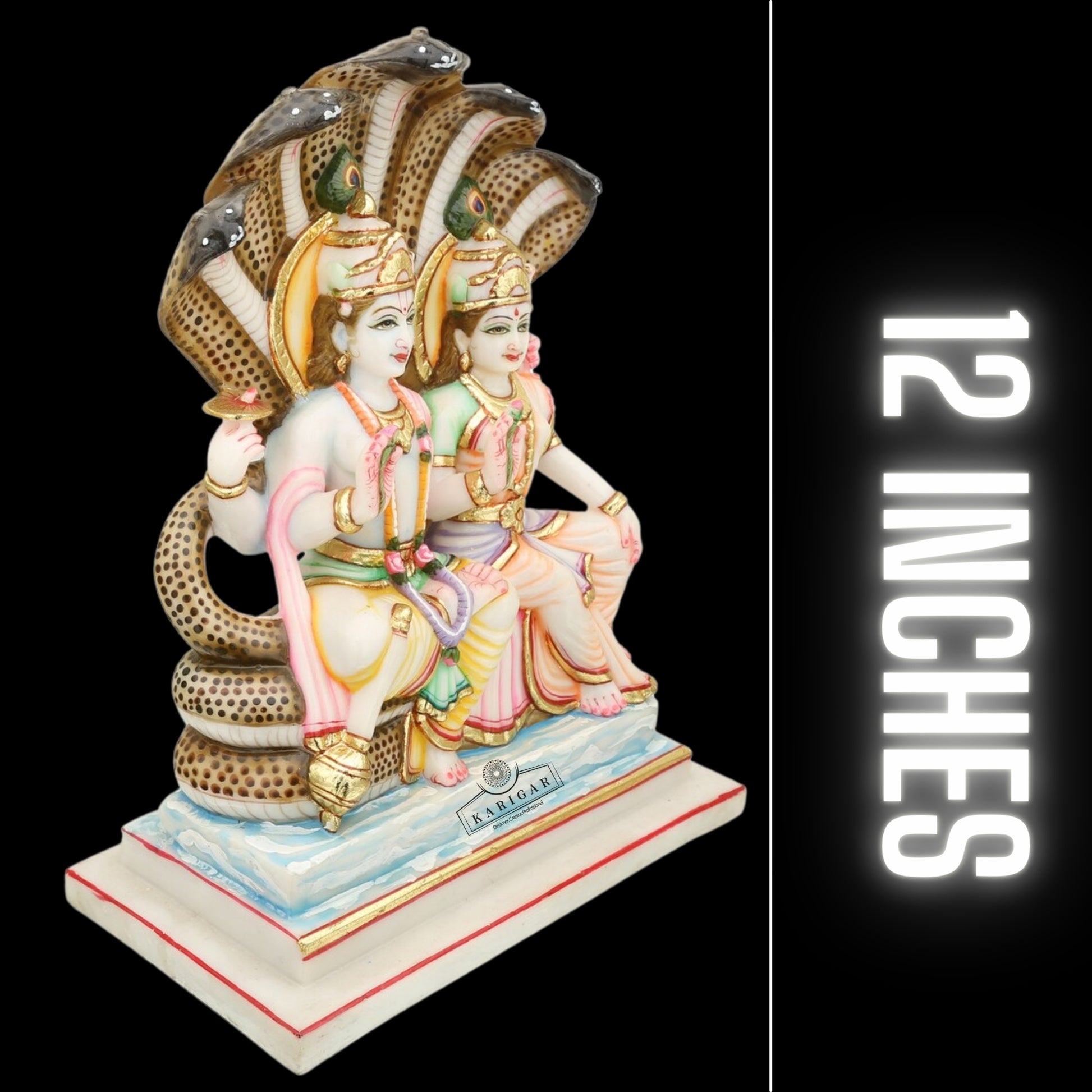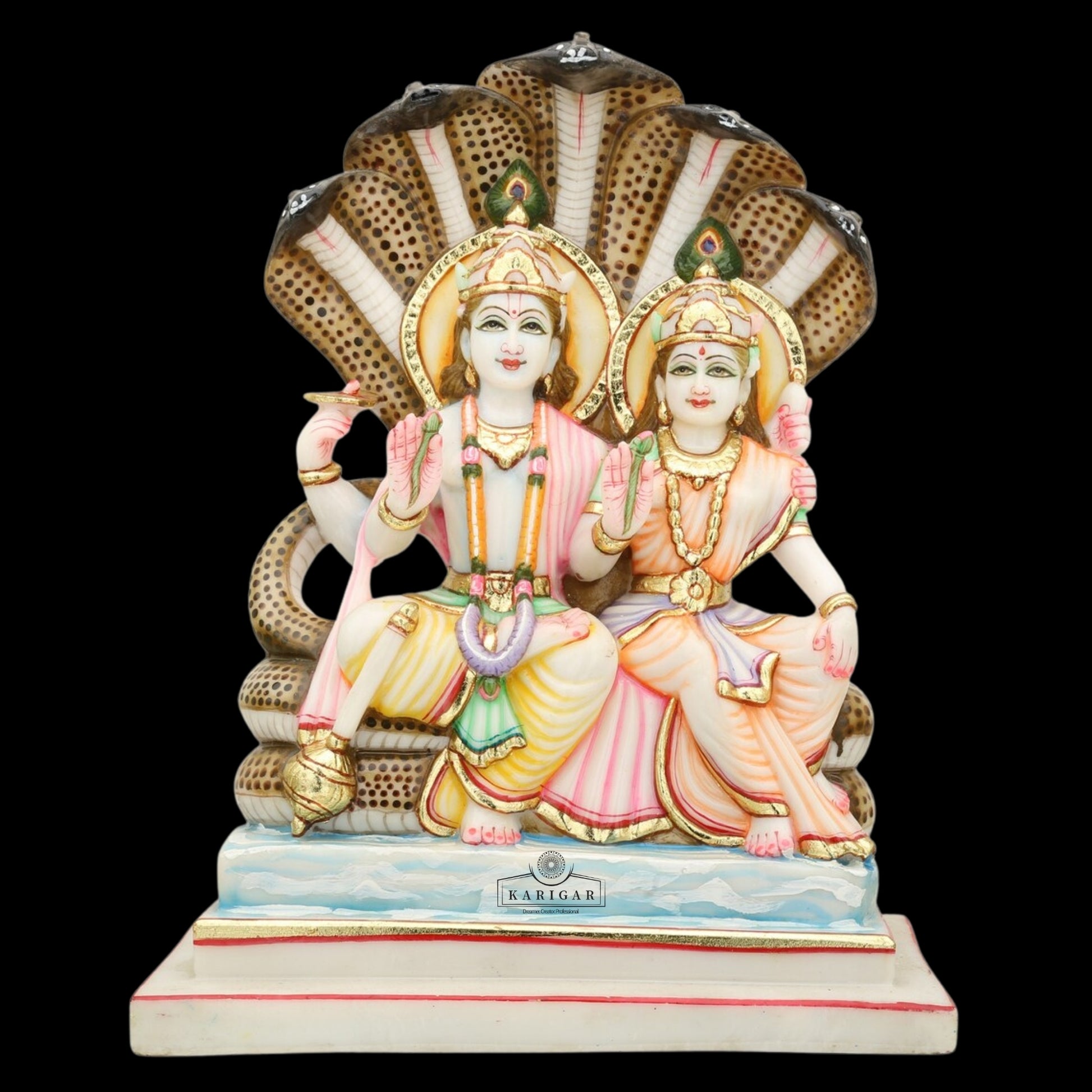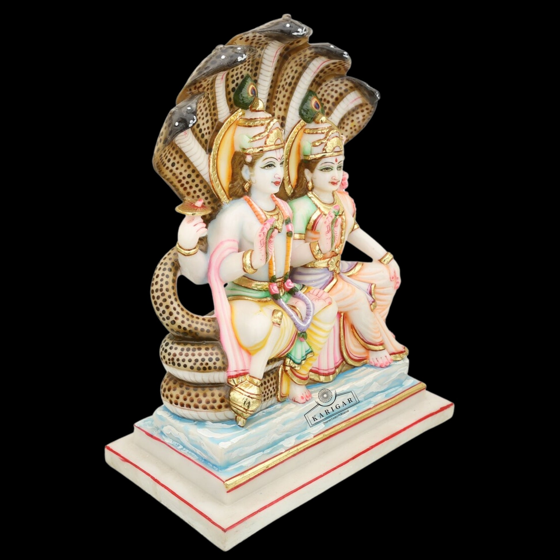 Vishnu Lakshmi Statue Large 12 inches Hand painted Marble Lakshmi Narayan Statue Sitting Vishnu Laxmi idol Laxmi Narayan Hindu Gods Statue Religious God Figurine Jagdish Sculpture Temple Decor Gifts