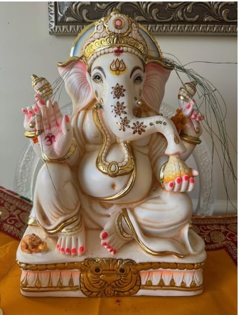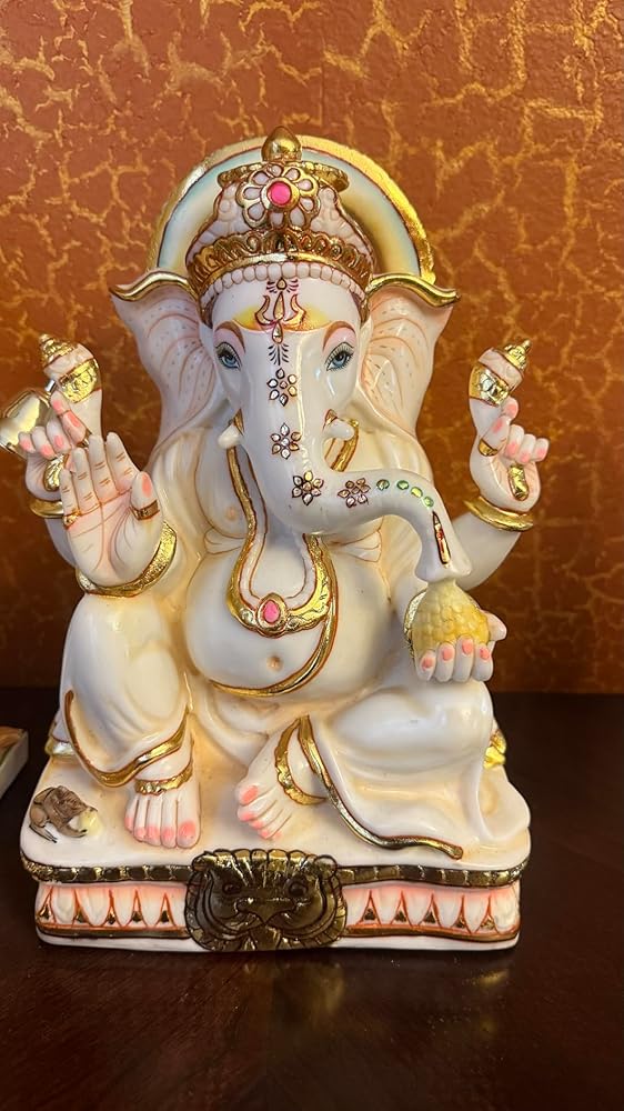 Ganesha Murti Statue 12'' Gold Leaf Marble Home First Ganapati Idol