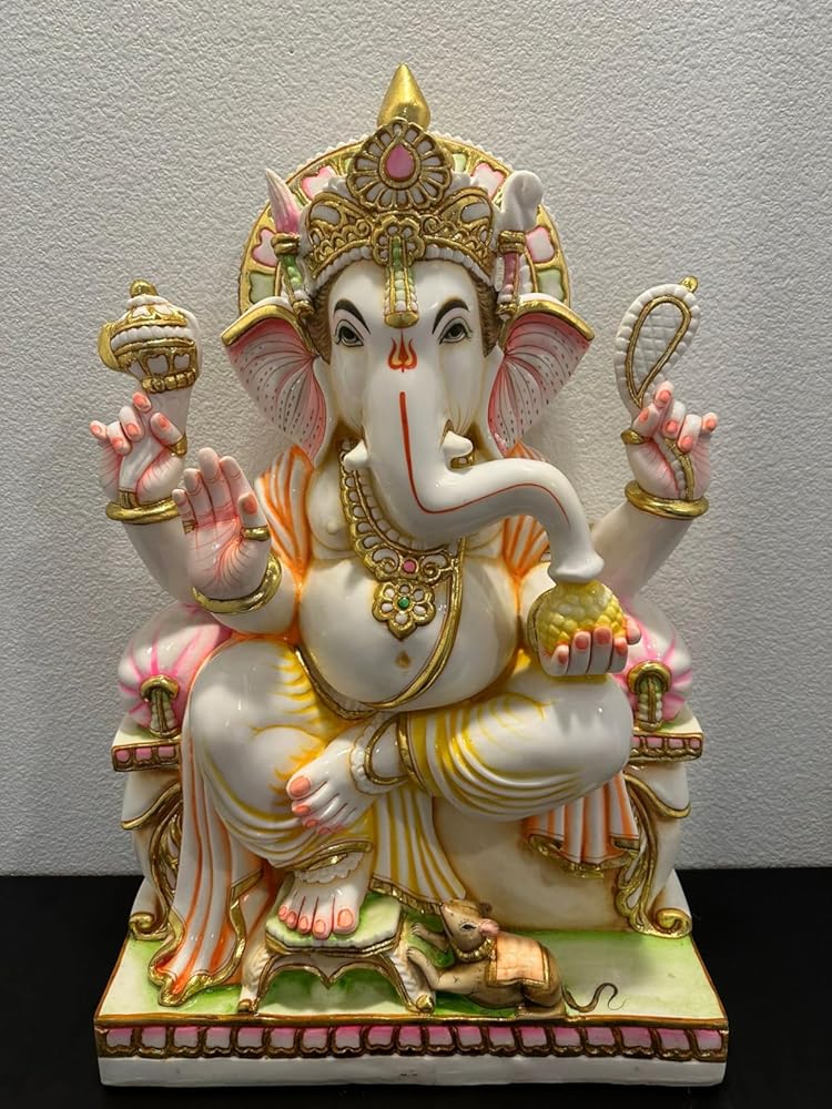 Ganesha Statue Large 24 inches Multicolor Marble Ganapati Idol For Home Temple Housewarming Gifts