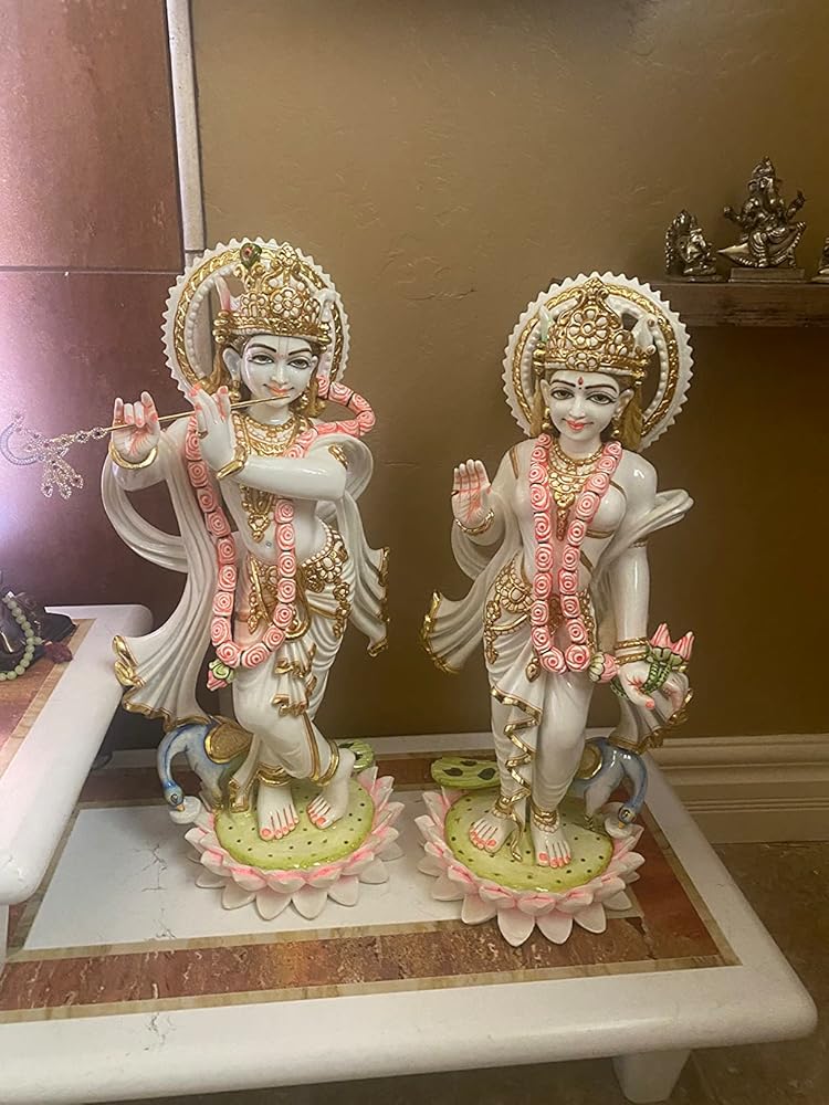 ❤️ 𝐏𝐋𝐄𝐀𝐒𝐀𝐍𝐓 𝐒𝐔𝐑𝐏𝐑𝐈𝐒𝐄 𝐀𝐍𝐍𝐈𝐕𝐄𝐑𝐒𝐀𝐑𝐘 𝐆𝐈𝐅𝐓𝐒 : Beautiful Radha krishna Marble statue 24 inches White Gold Finish which you will fall love with! Highly recommended for Home Office Decor Wedding Housewarming Anniversary Gifts for loved ones.